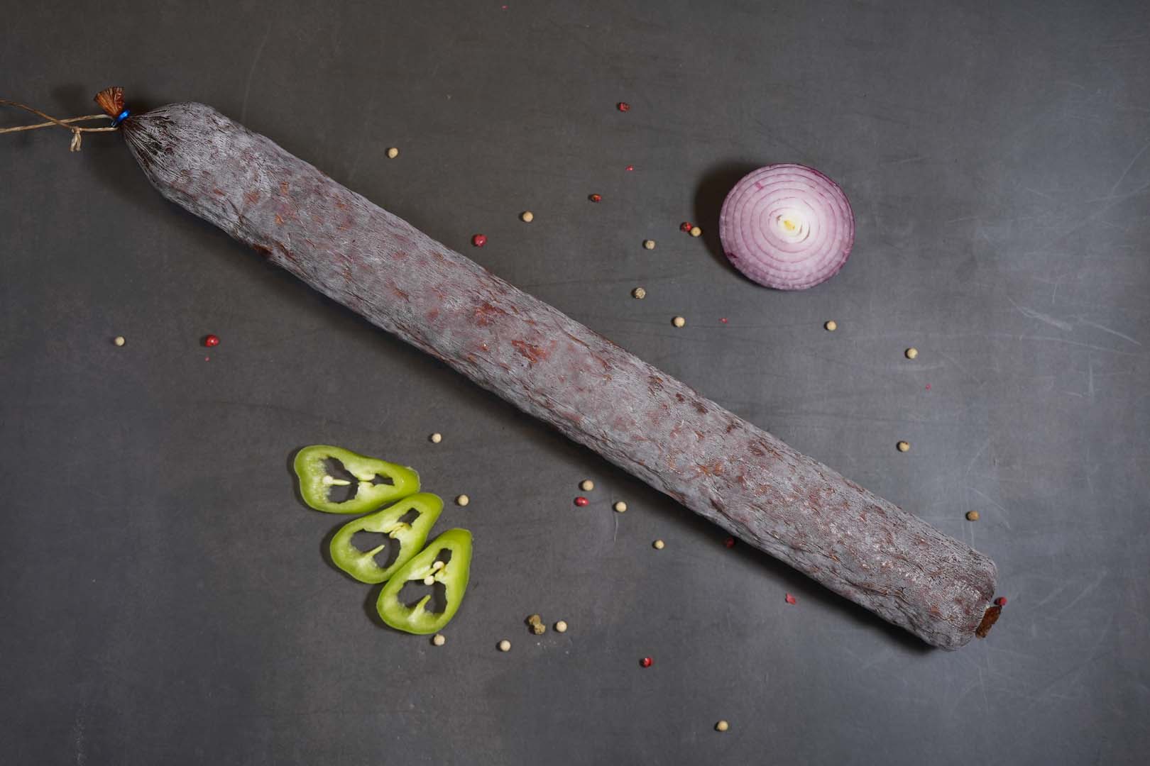 Hosszú érlelésű, nemespenészes szalámi, gazdag, mély aromavilággal.